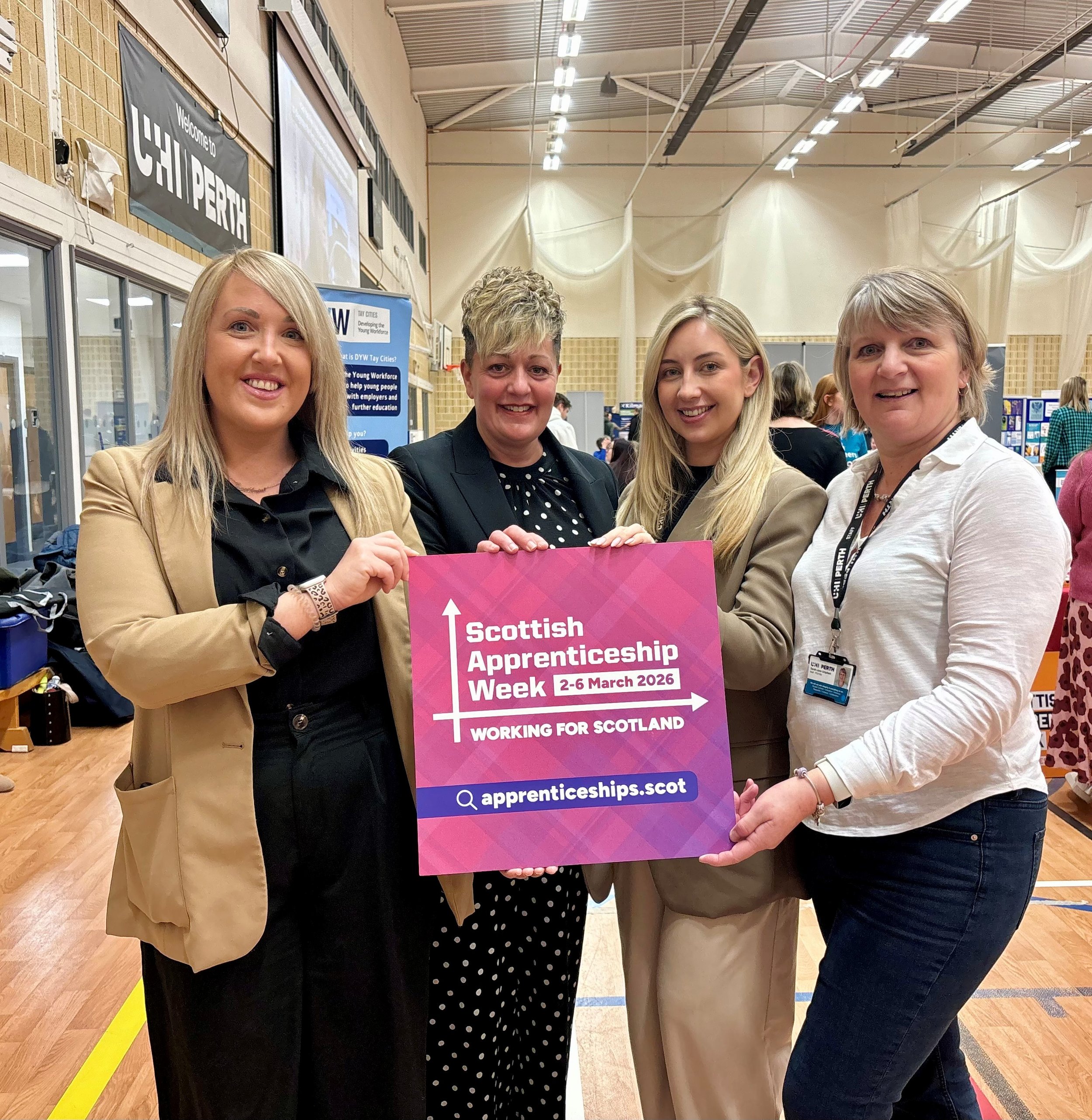 Trisha Wood (SDS Team Leader), Lesley English (DYW Tay Cities Regional Lead), Aimee Leith (UHI National Training Programmes Coordinator) and Sarah-Jane Urquhart (UHI Perth National Training Programmes and Business Team Manager)